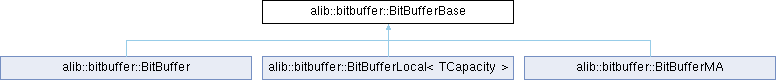 This class is abstract (pure virtual), and does not perform the allocation. With BitBuffer, BitBufferMA and BitBufferLocal, three descendants with different allocation strategies are provided. A customized version may be easily created by implementing pure virtual methods Capacity and EnsureCapacity.