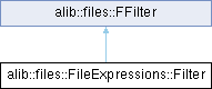 Implementation of abstract class FFilter which uses run-time compiled and evaluated expressions to determine the inclusion of files or directories. Instances of this type can be created with outer classes' method SPFileFilter CreateFilter(const String&) and, for example, be attached to fields FileFilter, DirectoryFilterPreRecursion and DirectoryFilterPostRecursion of class ScanParameters.