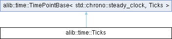 | Public Type Index: inherited from alib::time::TimePointBase< std::chrono::steady_clock, Ticks > | |
