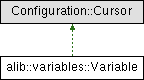 This is the central interface type into the module ALib Variables. The class is a very lightweight (size of two times sizeof(void*)) object, because it rather is a pointer to a variable instead of an implementation of its data structures. The types' true nature is inherited from class Cursor which is the base of this class. The inheritance is defined protected and this class received its own dedicated interface reflecting the domain of configuration variables. Nevertheless, the protected base type is accessible with the explicit cast method AsCursor. While a reader might think this is a contradiction, this was made by design: Casting to a StringTree::Cursor is only necessary for implementing ConfigurationPlugin or similar extraordinary things. For the common use, the dedicated interface is all that is needed.