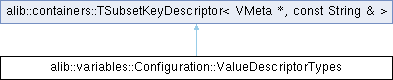 | Public Method Index: inherited from alib::containers::TSubsetKeyDescriptor< VMeta *, const String & > | |